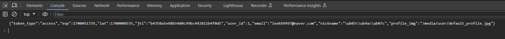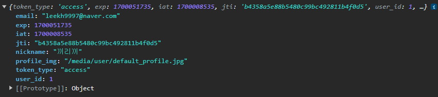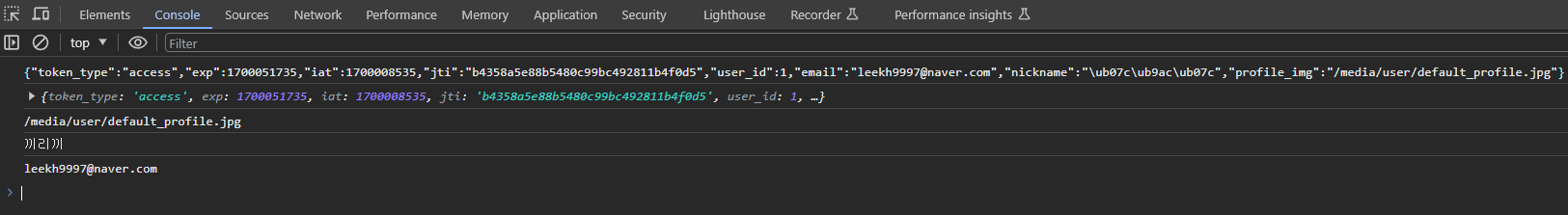 console.log(payload)를 해보니 사진, 닉네임, 이메일을 가져오고 있는걸 볼 수 있었다.