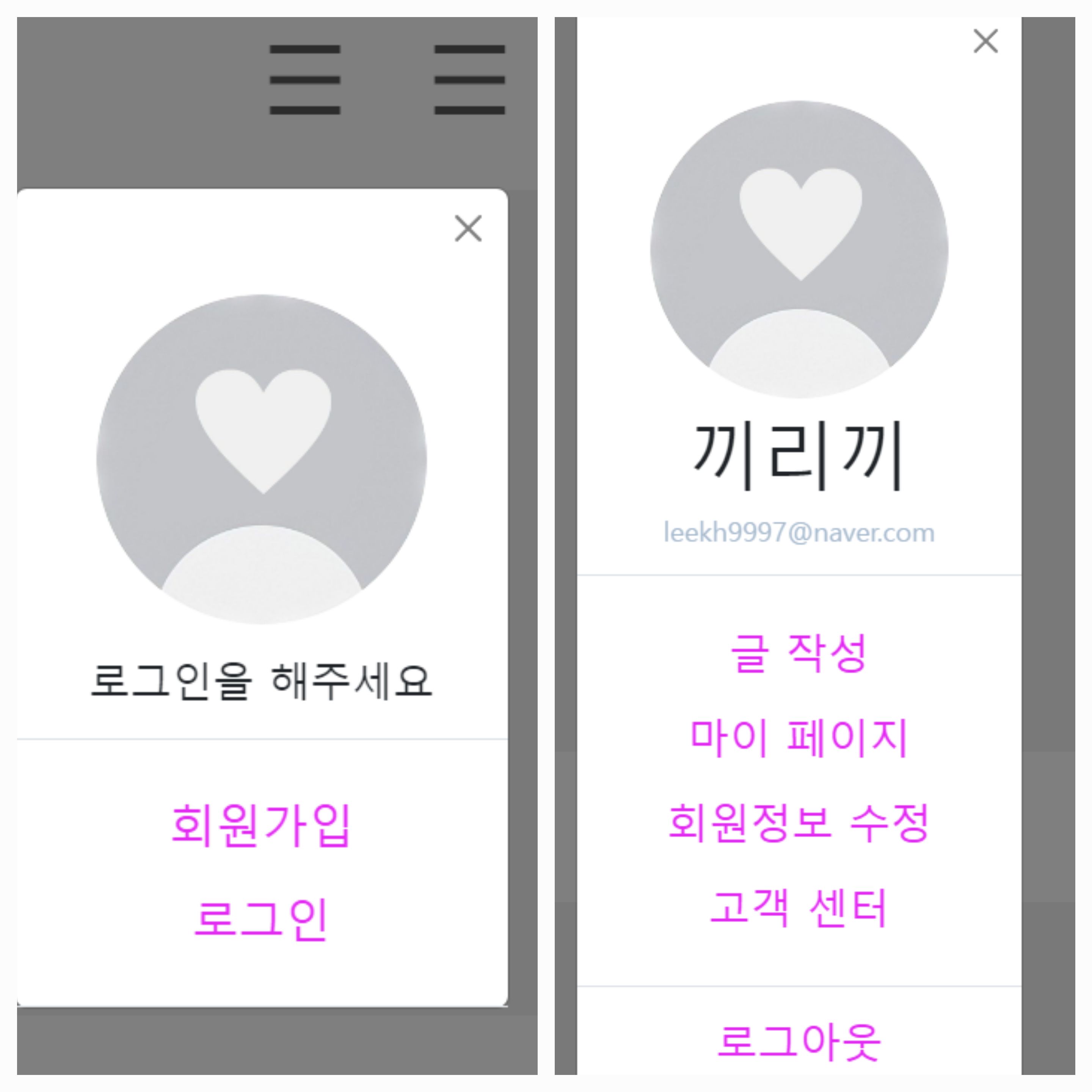 이제 if 로그인 or not 했을 때, 하나 display=none; 처리 해주면 끝날듯?!